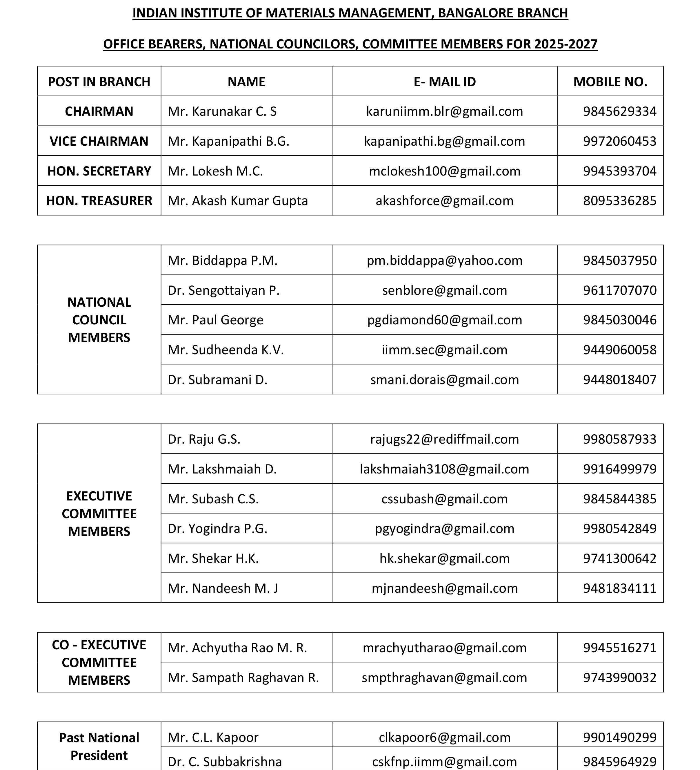 IIMM is the only professional body representing Materials and Supply Chain Management in India for over three decades that offers courses approved by the DEC, Govt. of India. IIMM is affiliated to the International Federation of Purchasing and Supply Management (IFPSM), Headquartered in Hampshire, UK. IIMM has a strength of over 10,000 members in 50 branches and 19 chapters across India. The member body consists of executives from the Public & Private sector organizations, Armed forces, and Academia.